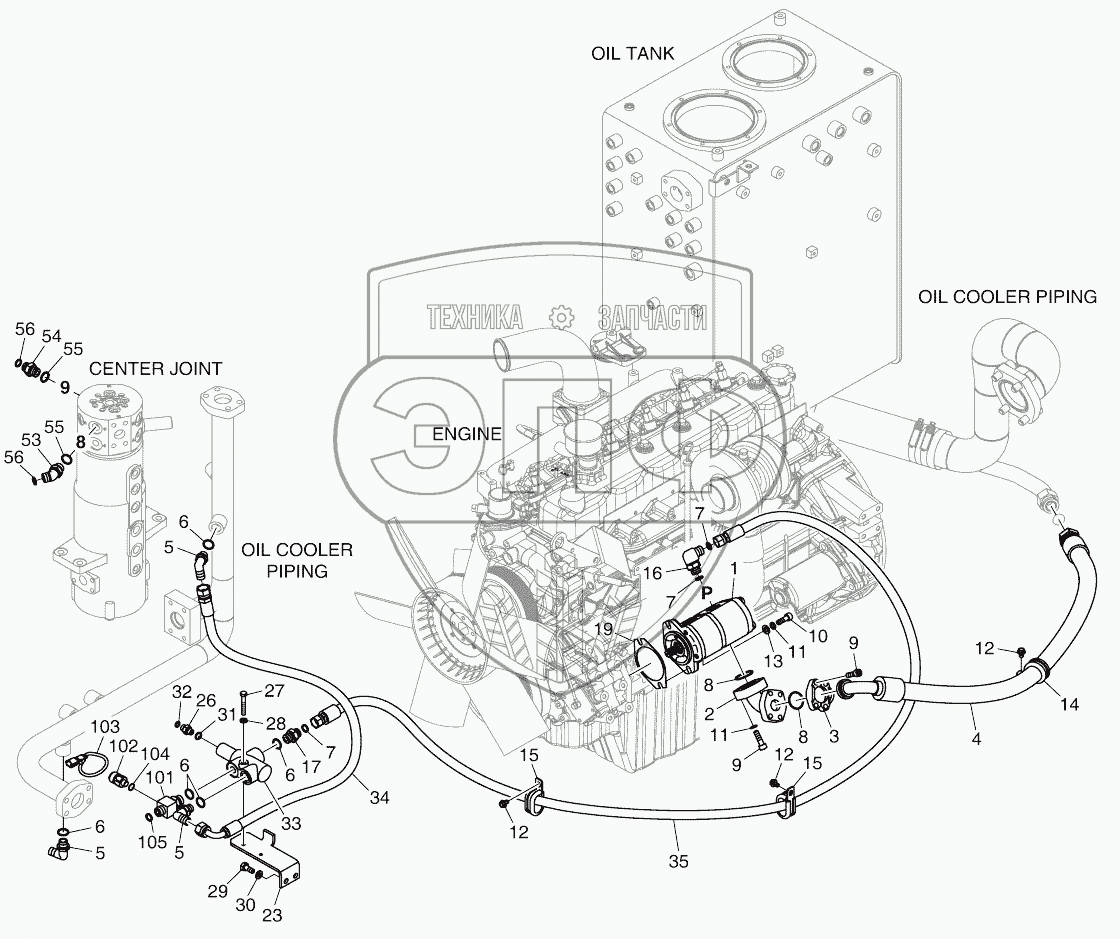 Каталог запасных частей к технике: Doosan DX140W. STEERING PIPING (1) - EMR