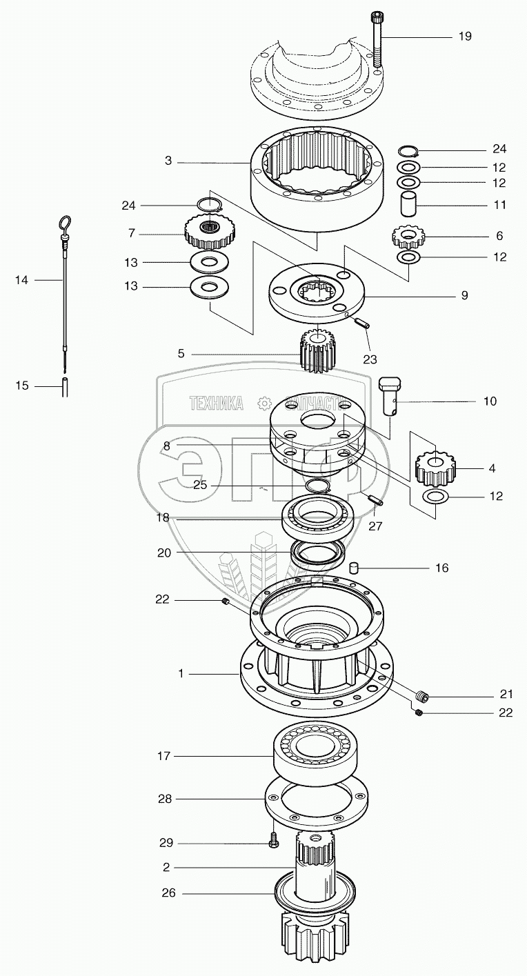 Каталог запасных частей к технике: Doosan DX140W. SWING REDUCTION GEAR