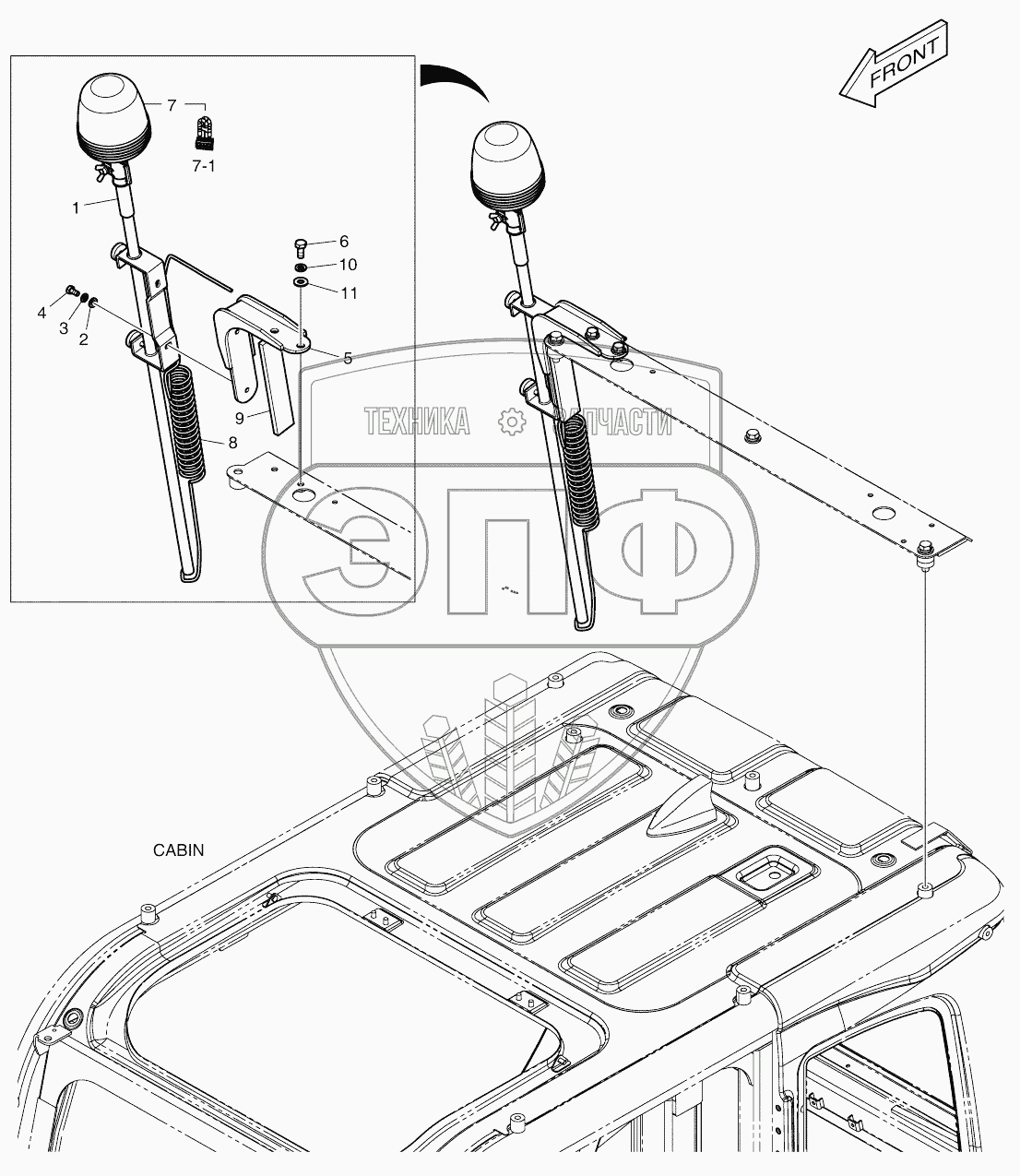 Каталог запасных частей к технике: Doosan DX140W. TELESCOPIC BEACON - WITH LAMP ROPS