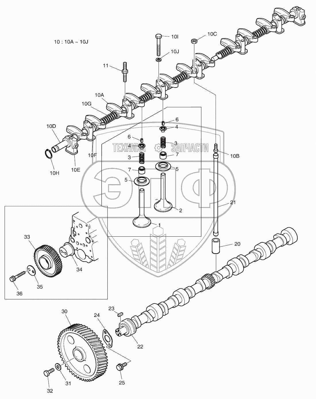 | 10 | 150122-00006 | Rocker arm and shaft assy | Нет на складе | |