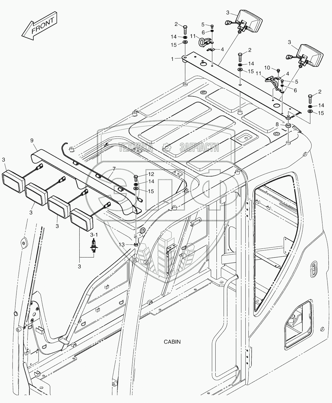 Каталог запасных частей к технике: Doosan DX140W. WORKING LAMP (6-LAMP) - ROPS