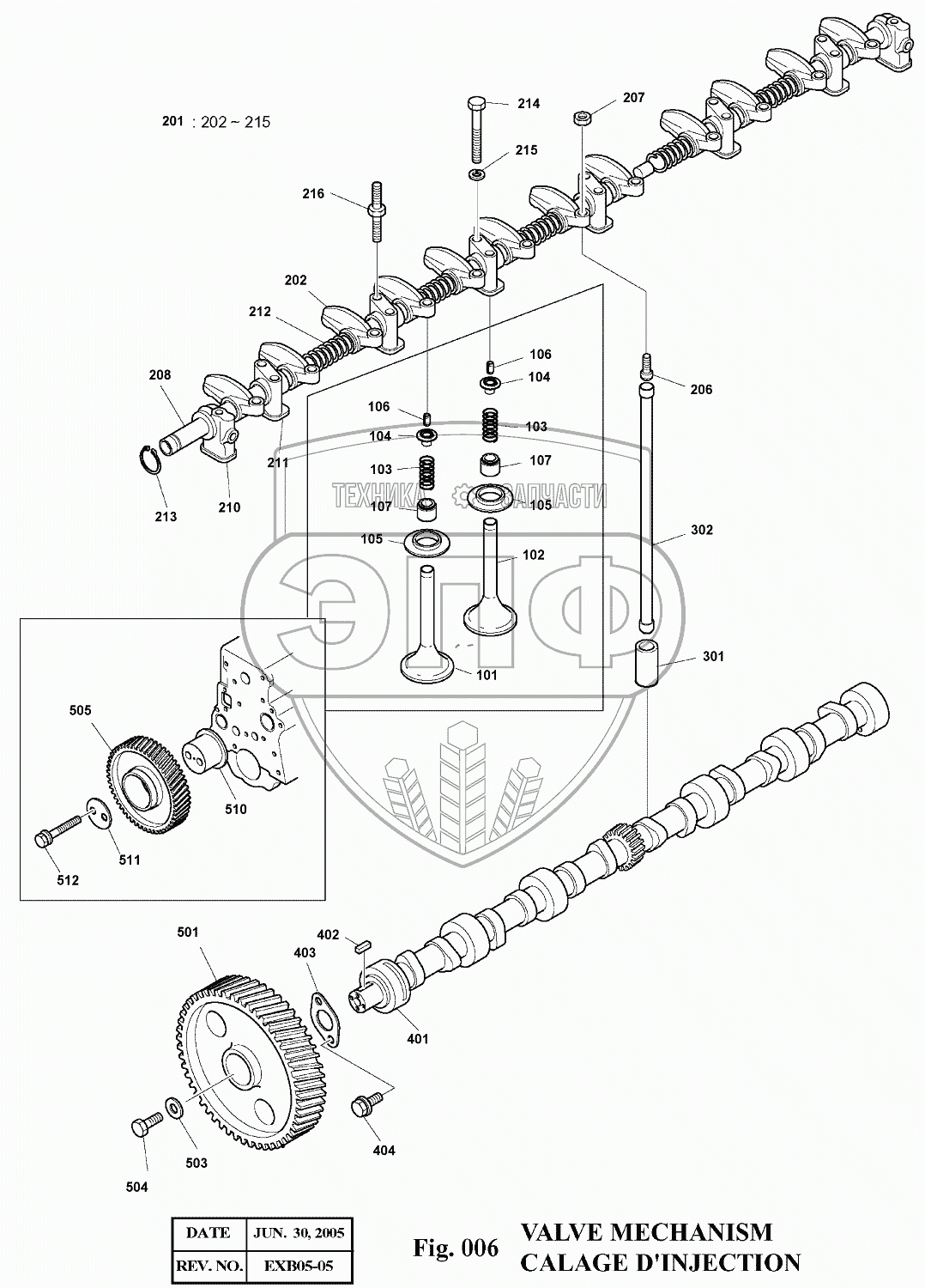 Каталог запасных частей к технике: Doosan Экскаватор SOLAR 140LC-V. 006 Клапанный механизм