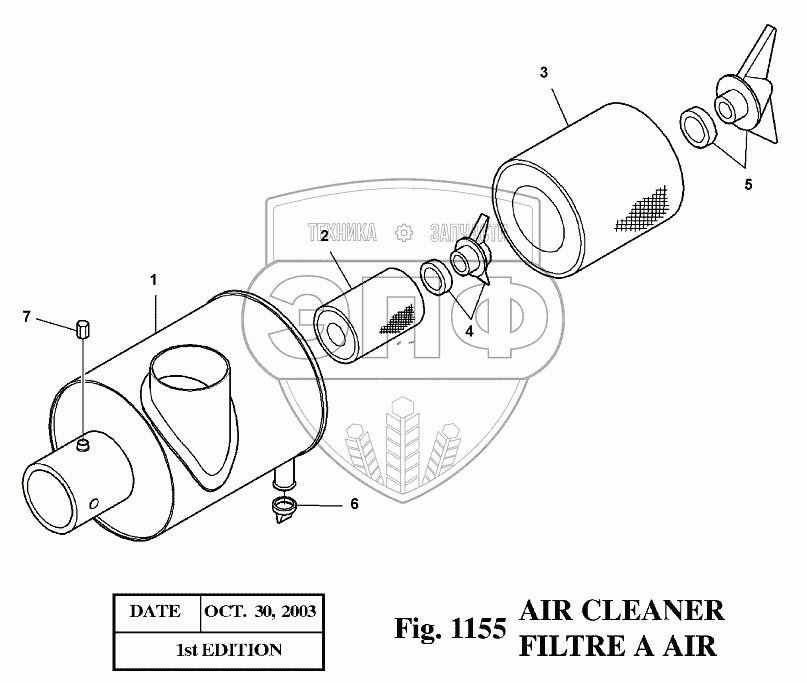 Каталог запасных частей к технике: Doosan Экскаватор SOLAR 140LC-V. 1155 Фильтр воздушный