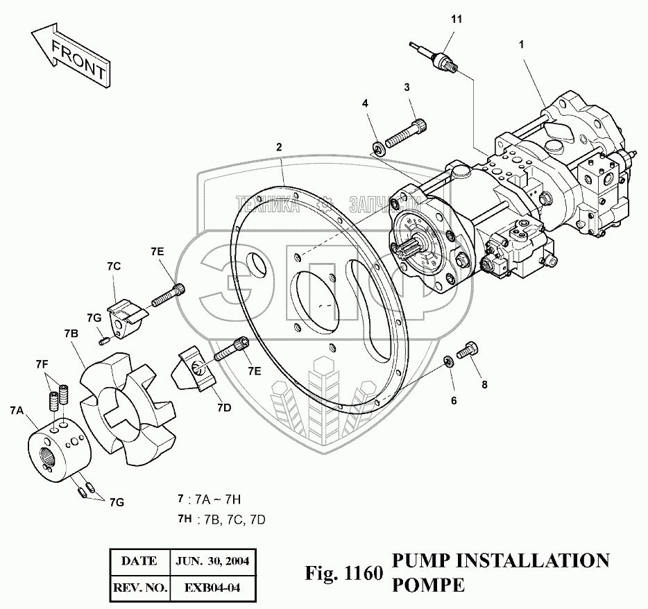 Каталог запасных частей к технике: Doosan Экскаватор SOLAR 140LC-V. 1160 Установка насоса