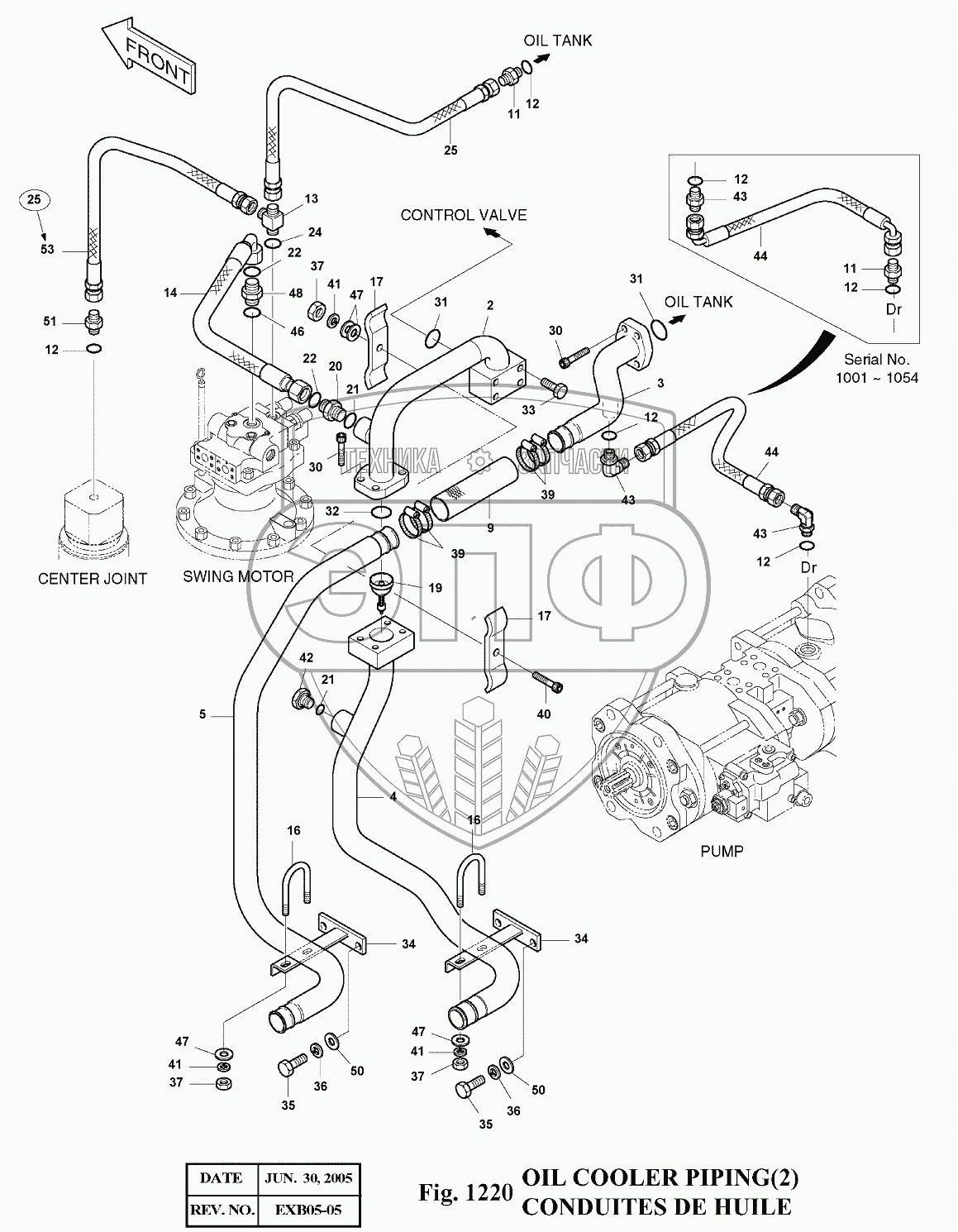 Каталог запасных частей к технике: Doosan Экскаватор SOLAR 140LC-V. 1220 Трубопроводы маслоохладителя