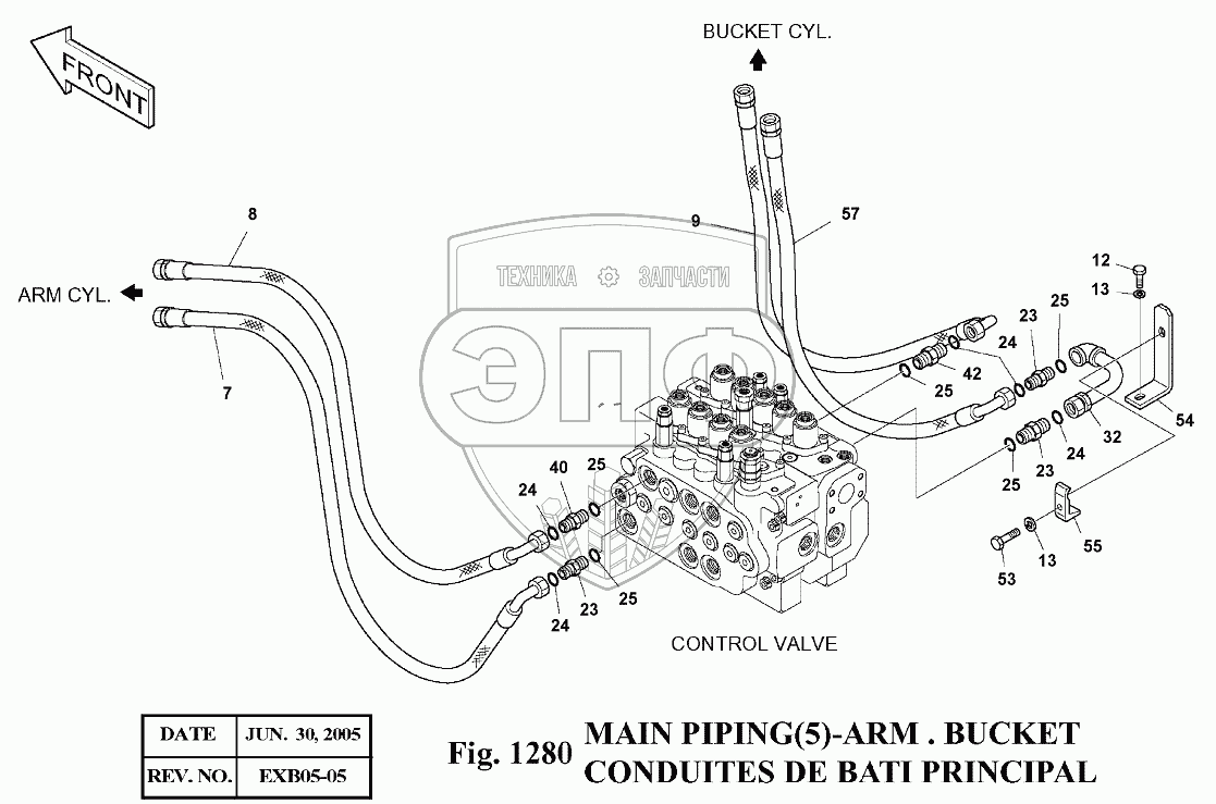 Каталог запасных частей к технике: Doosan Экскаватор SOLAR 140LC-V. 1280 Трубопроводы управления