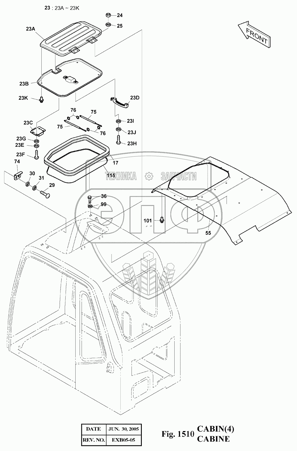 Каталог запасных частей к технике: Doosan Экскаватор SOLAR 140LC-V. 1510 Кабина