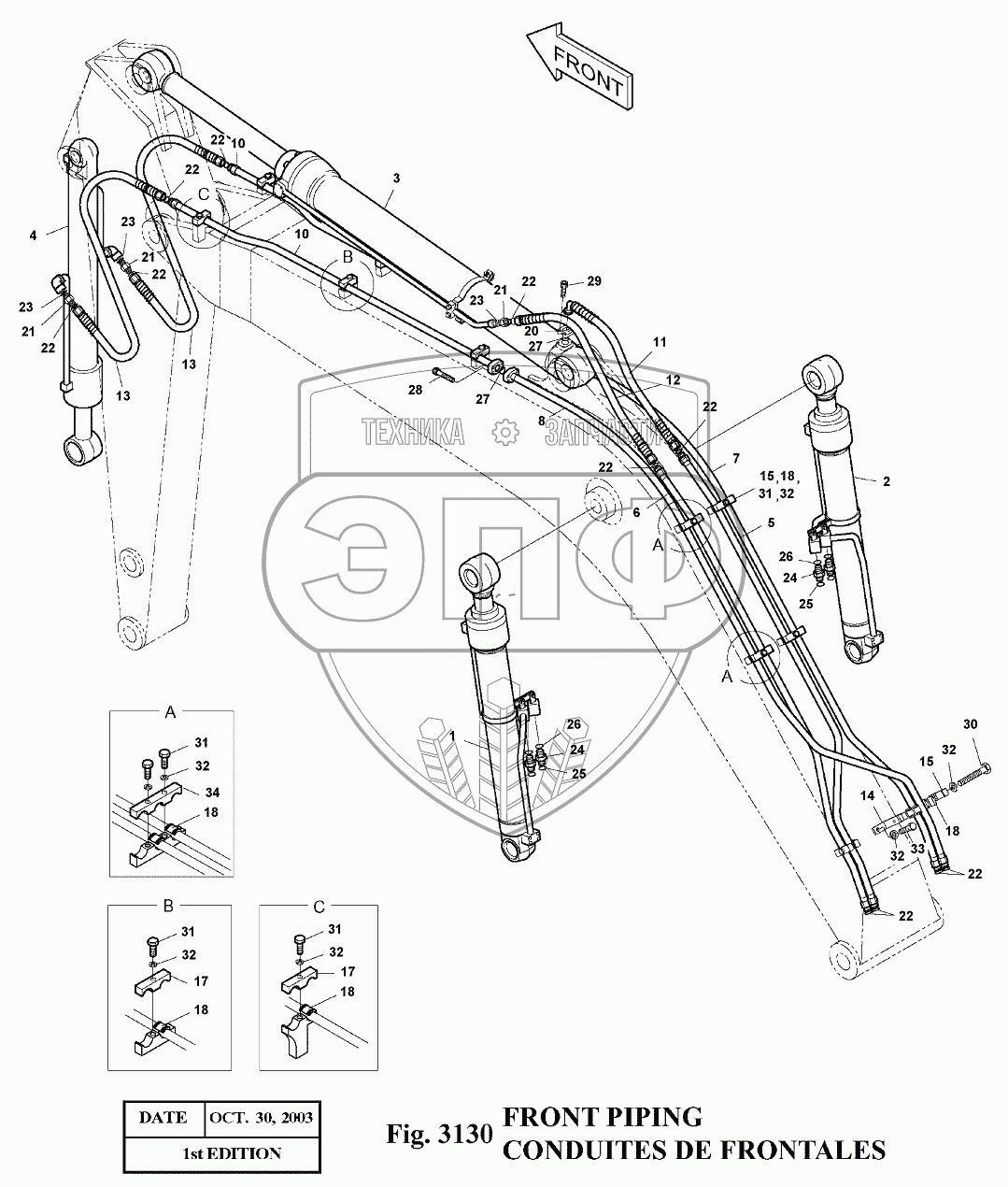 Каталог запасных частей к технике: Doosan Экскаватор SOLAR 140LC-V. 3130 Трубопроводы
