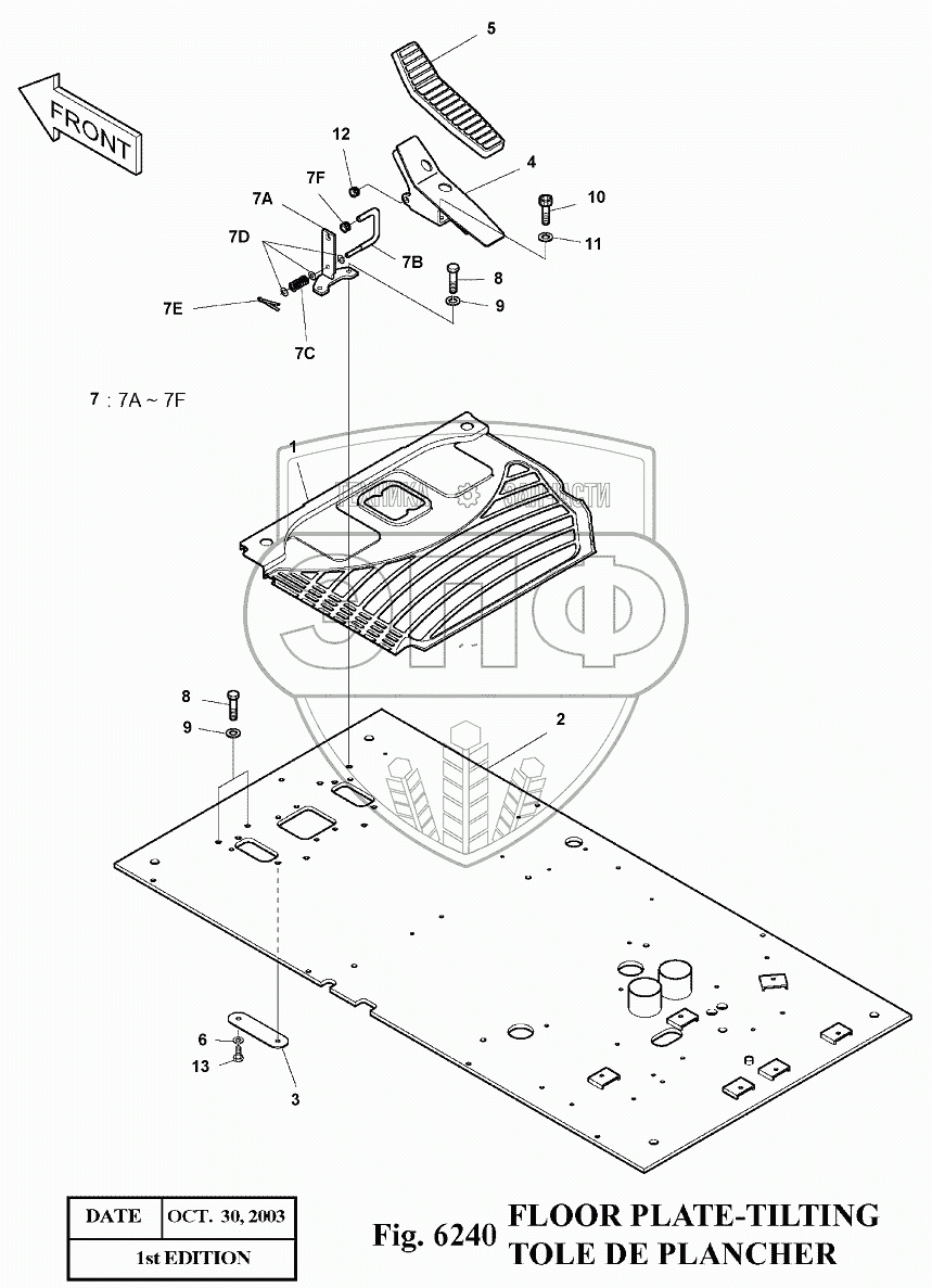 Каталог запасных частей к технике: Doosan Экскаватор SOLAR 140LC-V. 6240 Пол кабины