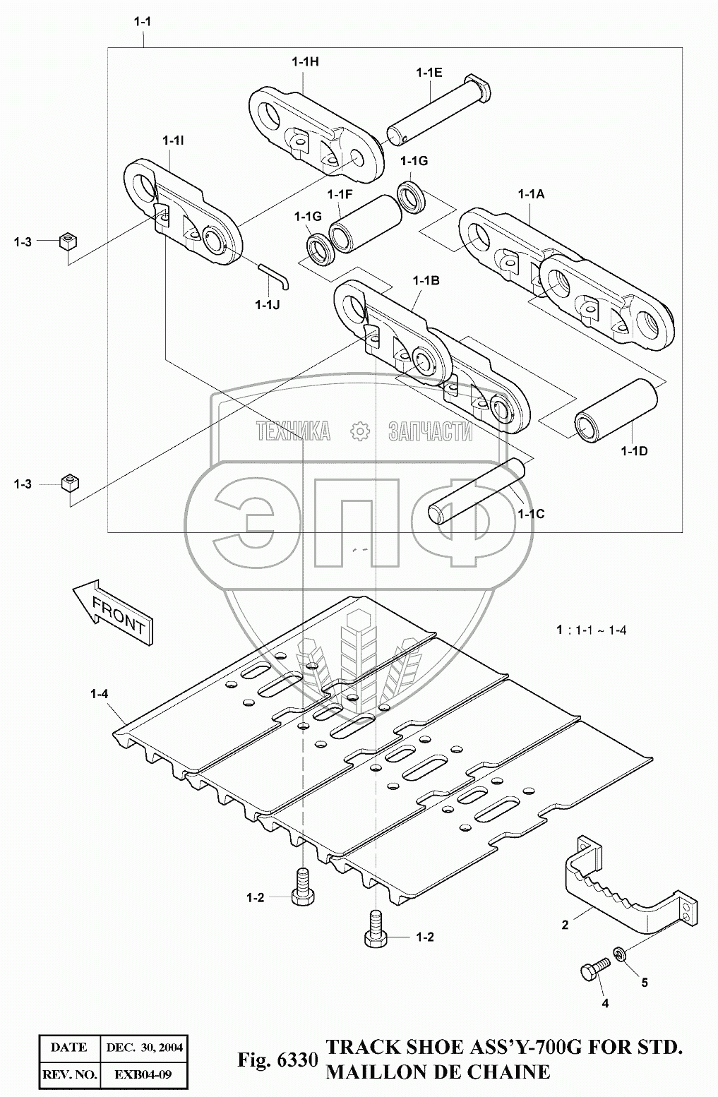 Каталог запасных частей к технике: Doosan Экскаватор SOLAR 140LC-V. 6330 Гусеница