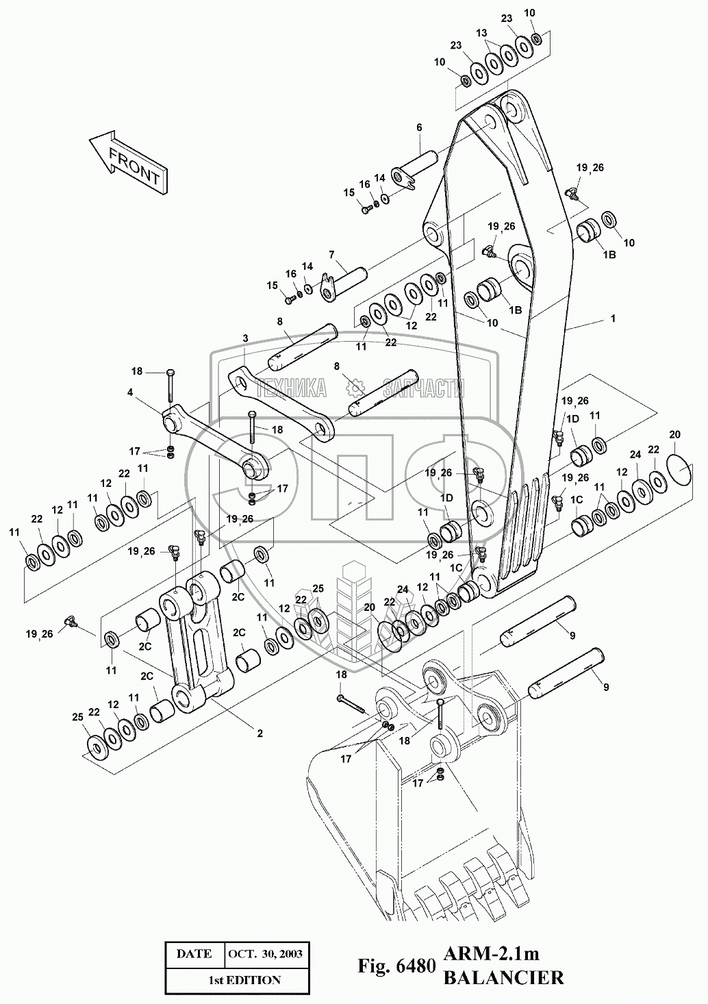Каталог запасных частей к технике: Doosan Экскаватор SOLAR 140LC-V. 6480 Рукоять