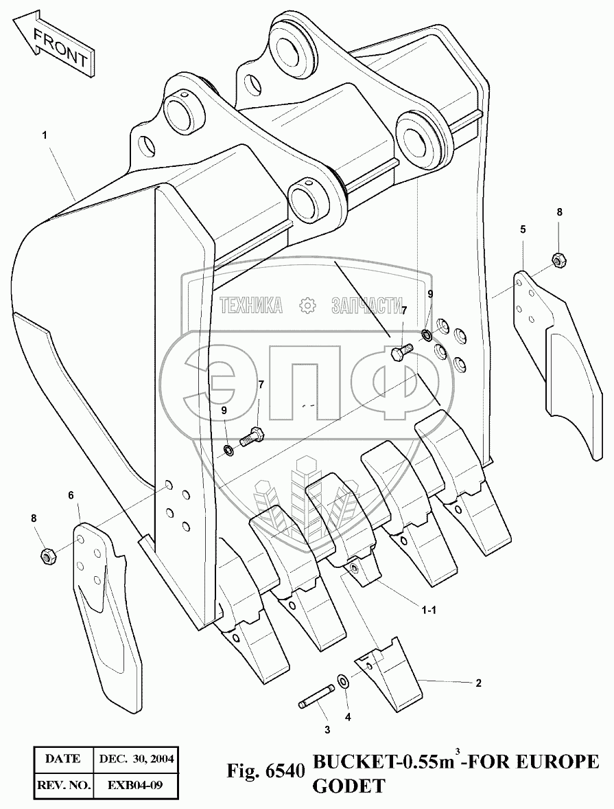 Каталог запасных частей к технике: Doosan Экскаватор SOLAR 140LC-V. 6540 Ковш