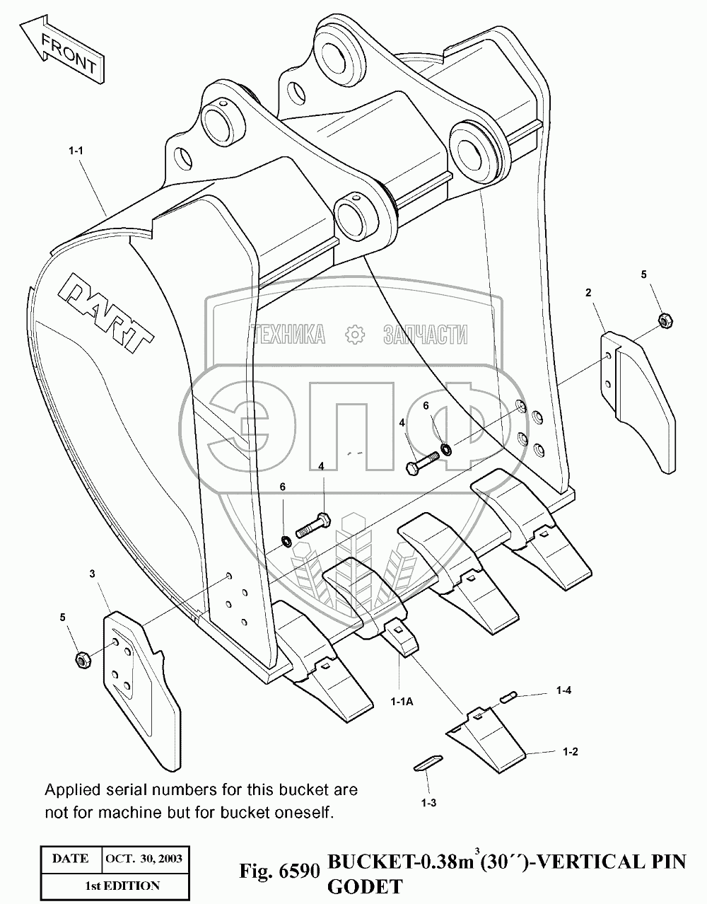 Каталог запасных частей к технике: Doosan Экскаватор SOLAR 140LC-V. 6590 Ковш