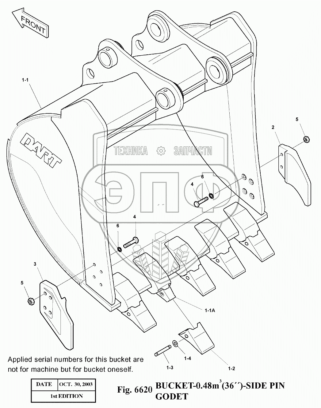 Каталог запасных частей к технике: Doosan Экскаватор SOLAR 140LC-V. 6620 Ковш