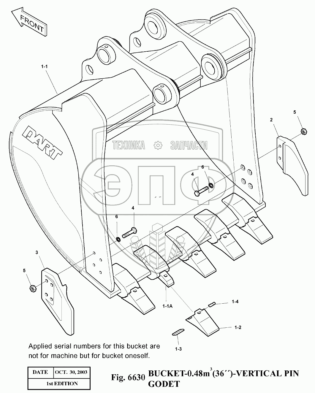 Каталог запасных частей к технике: Doosan Экскаватор SOLAR 140LC-V. 6630 Ковш
