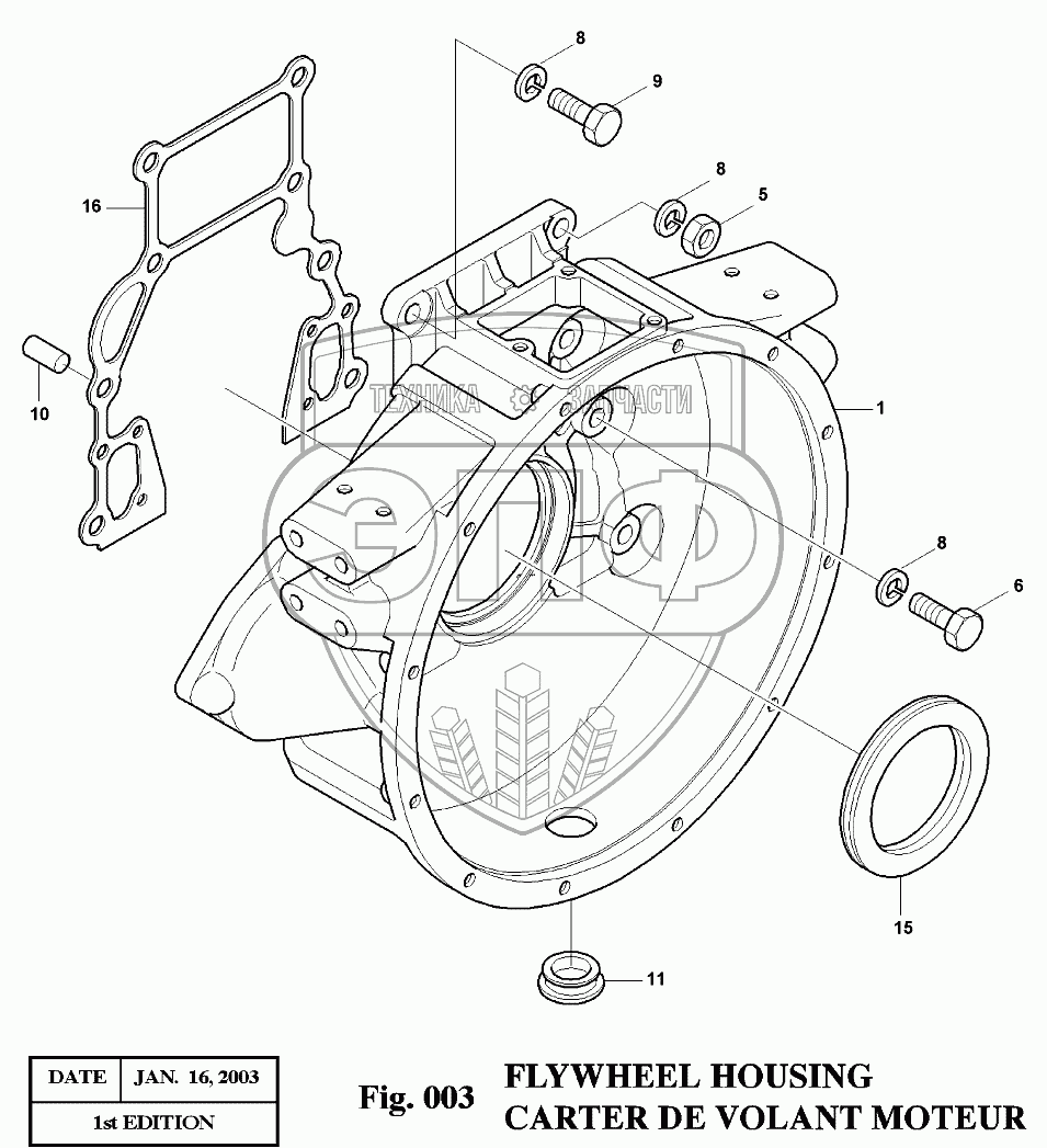Каталог запасных частей к технике: Doosan Экскаватор SOLAR 175LC-V. 003 Картер маховика
