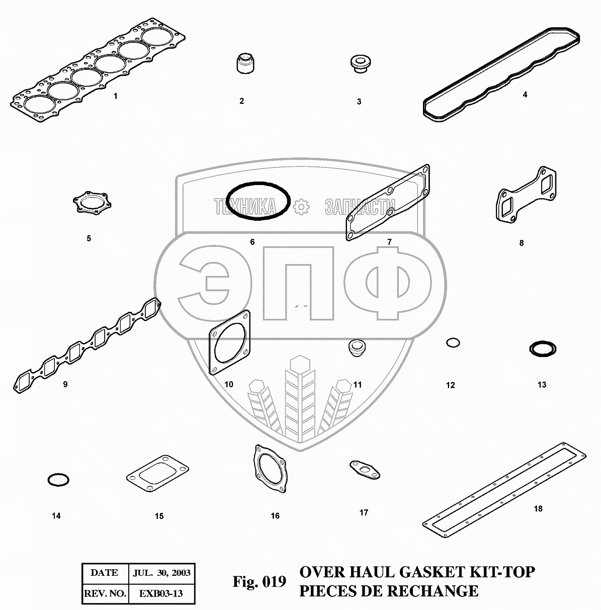 Каталог запасных частей к технике: Doosan Экскаватор SOLAR 175LC-V. 019 Комплект прокладок