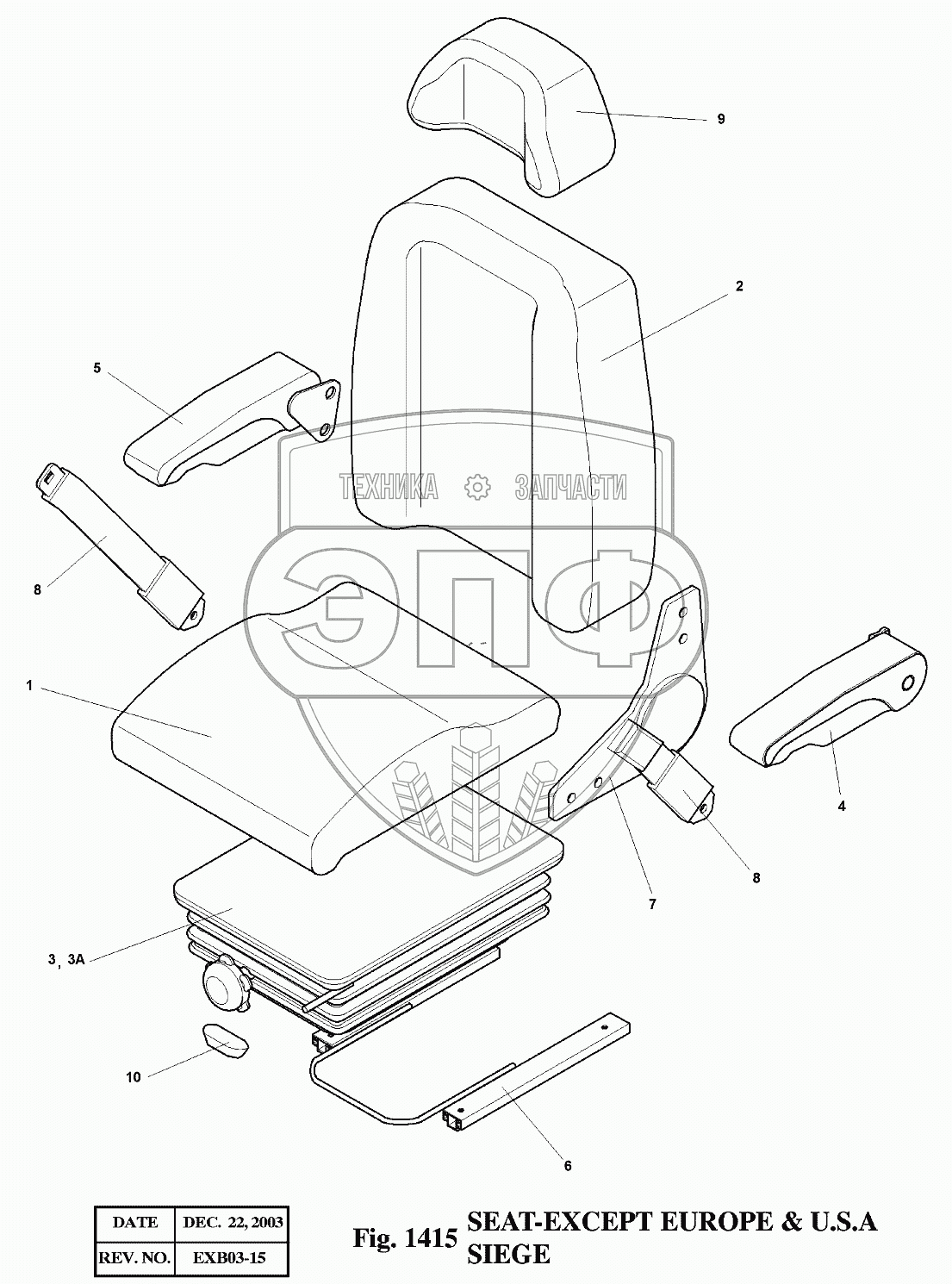 Каталог запасных частей к технике: Doosan Экскаватор SOLAR 175LC-V. 1415 Сиденье