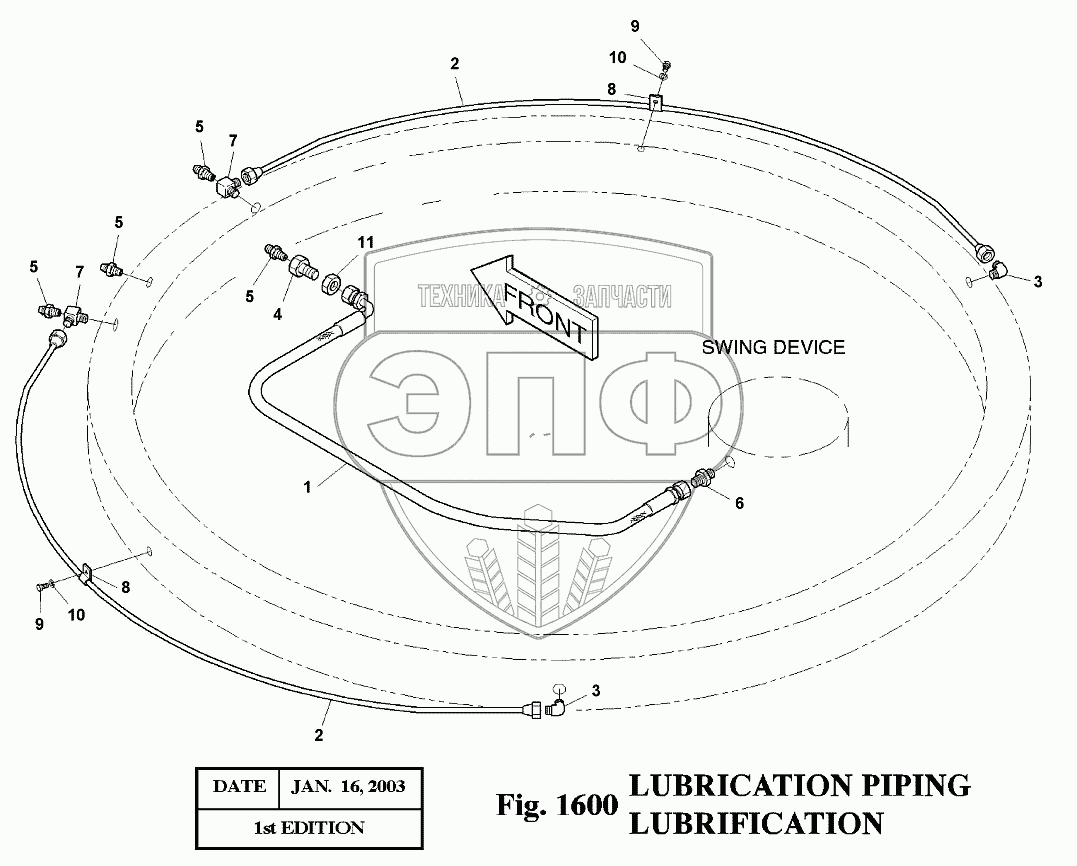 Каталог запасных частей к технике: Doosan Экскаватор SOLAR 175LC-V. 1600 Трубопроводы смазочные