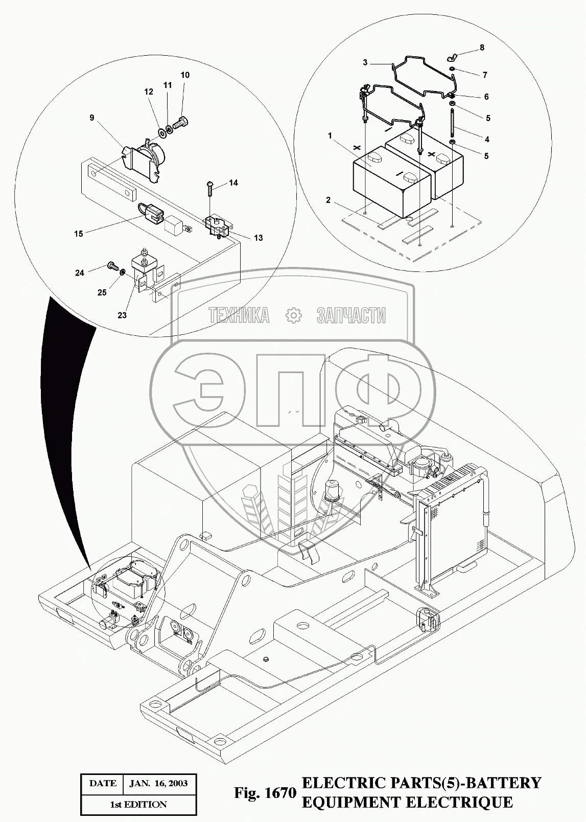 Каталог запасных частей к технике: Doosan Экскаватор SOLAR 175LC-V. 1670 Электрооборудование