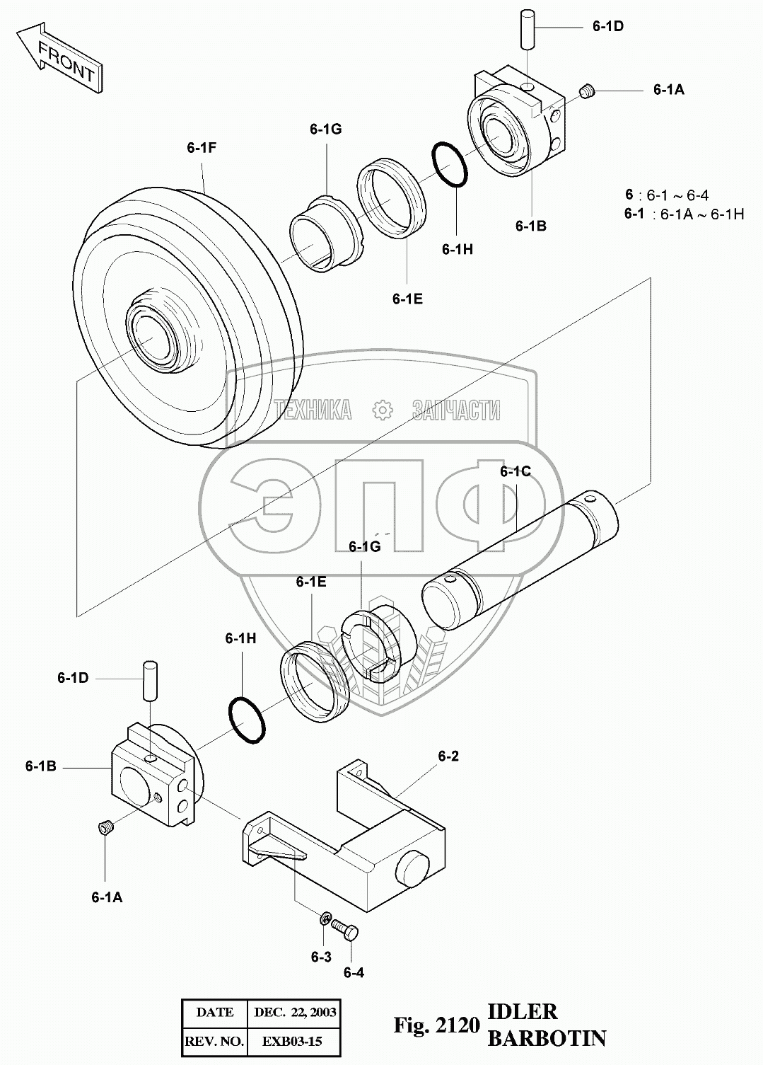 Каталог запасных частей к технике: Doosan Экскаватор SOLAR 175LC-V. 2120 Колесо направляющее