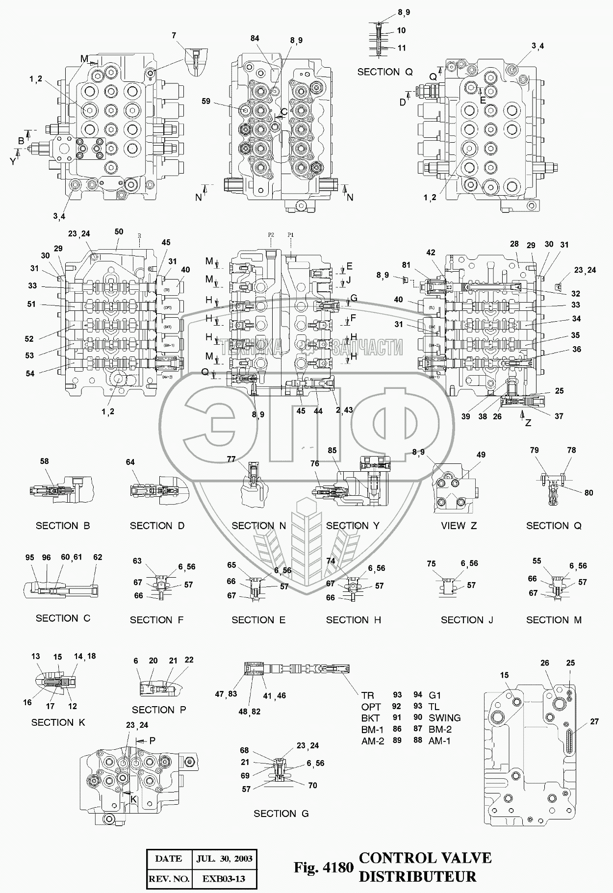 Каталог запасных частей к технике: Doosan Экскаватор SOLAR 175LC-V. 4180 Гидрораспределитель