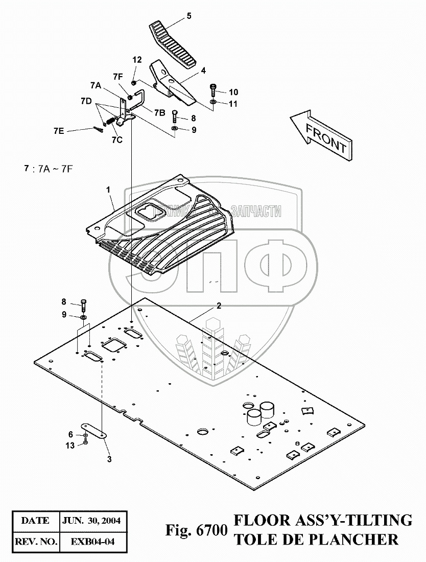Каталог запасных частей к технике: Doosan Экскаватор SOLAR 175LC-V. 6700 Пол кабины