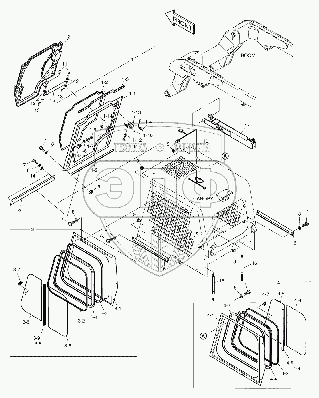 Каталог запасных частей к технике: Doosan Мини-погрузчик 430 Plus. 6270 Установка двери