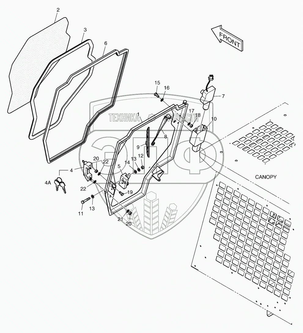 Каталог запасных частей к технике: Doosan Мини-погрузчик 430 Plus. 6280 Передняя дверь