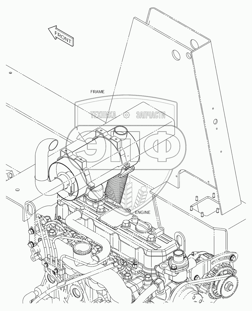 Каталог запасных частей к технике: Doosan Мини-погрузчик 430 Plus. 6450 Глушитель с искрогасителем