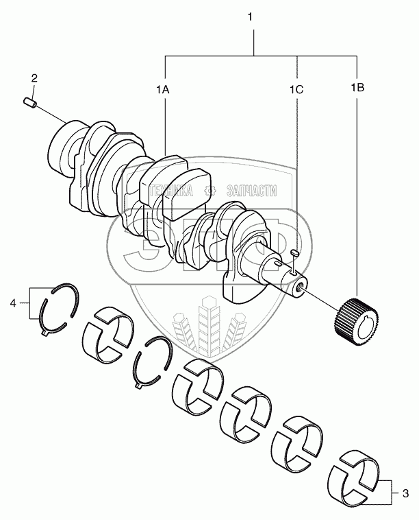 Каталог запасных частей к технике: Doosan Мини-погрузчик 440 Plus. 019 Вал коленчатый