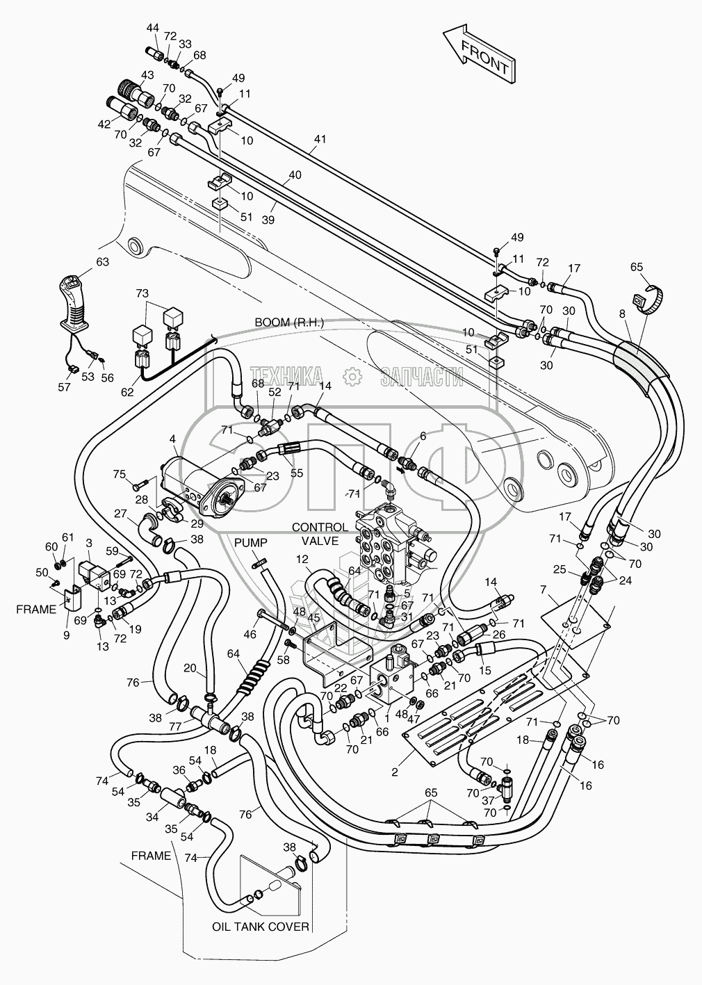 Каталог запасных частей к технике: Doosan Мини-погрузчик 440 Plus. 6190 Гидросистема