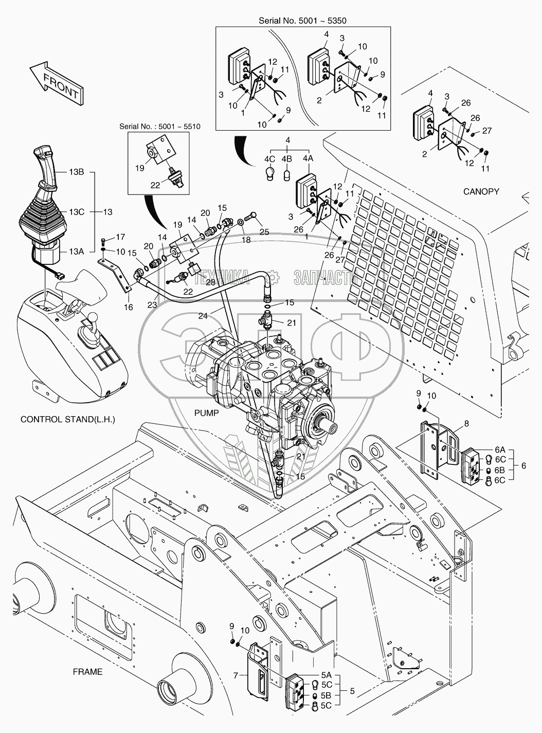 Каталог запасных частей к технике: Doosan Мини-погрузчик 440 Plus. 6810 Дополнительное освещение