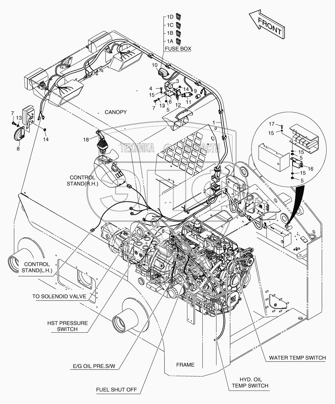 Каталог запасных частей к технике: Doosan Мини-погрузчик 440 Plus. 6820 Электрооборудование