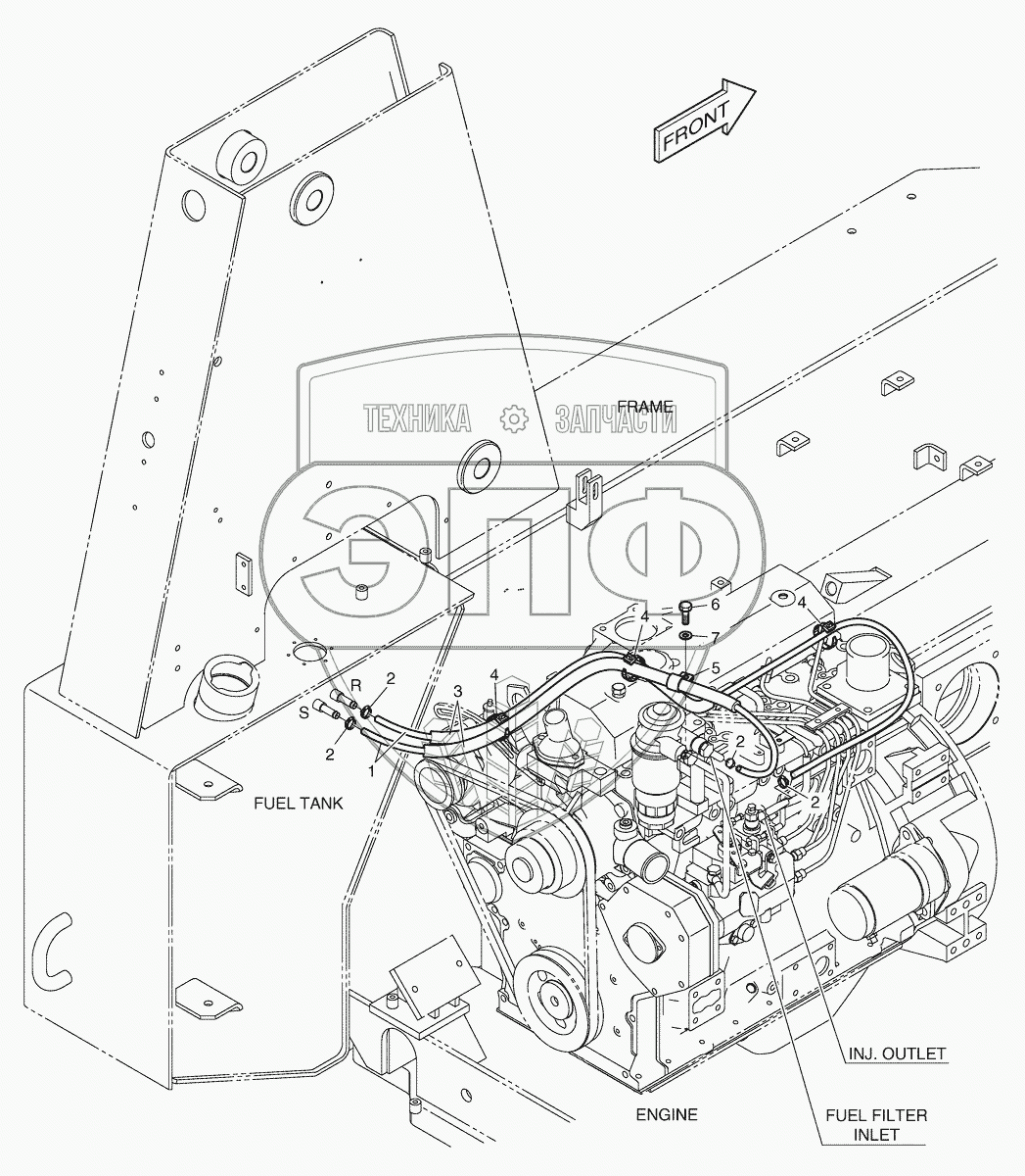 Каталог запасных частей к технике: Doosan Мини-погрузчик 450 Plus. 2180 Топливные трубопроводы
