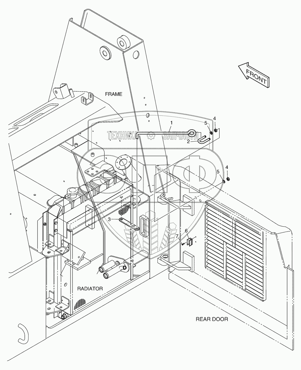 Каталог запасных частей к технике: Doosan Мини-погрузчик 450 Plus. 6390 Замок задней двери
