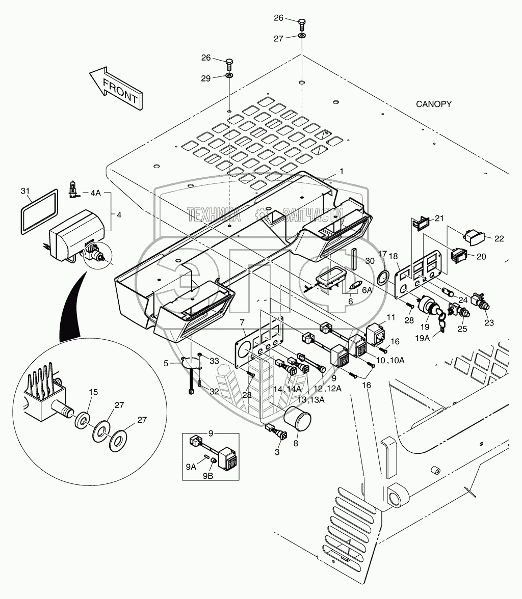 Каталог запасных частей к технике: Doosan Мини-погрузчик 450 Plus (Tier3). 1340 Электрооборудование