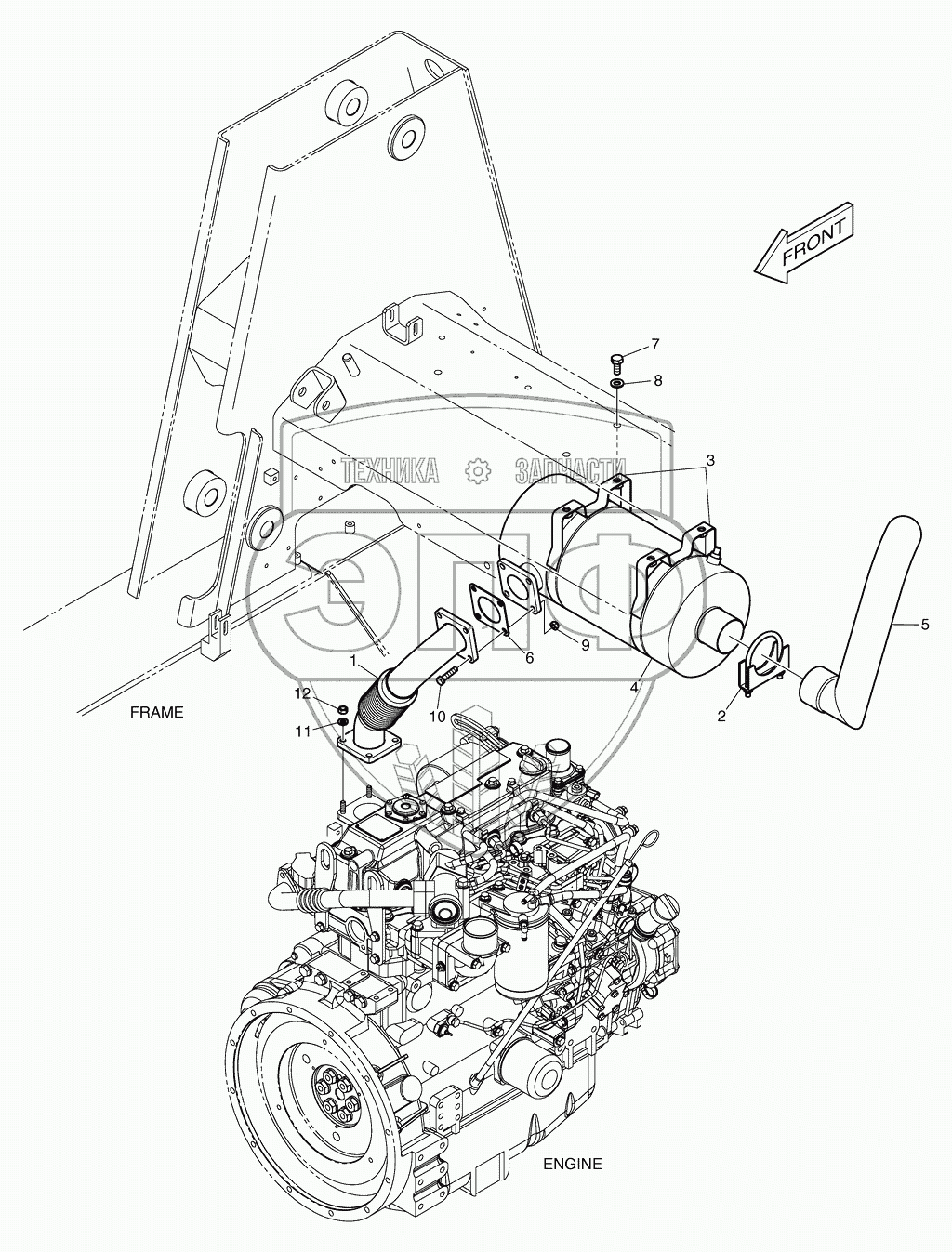 Каталог запасных частей к технике: Doosan Мини-погрузчик 450 Plus (Tier3). 2120 Глушитель