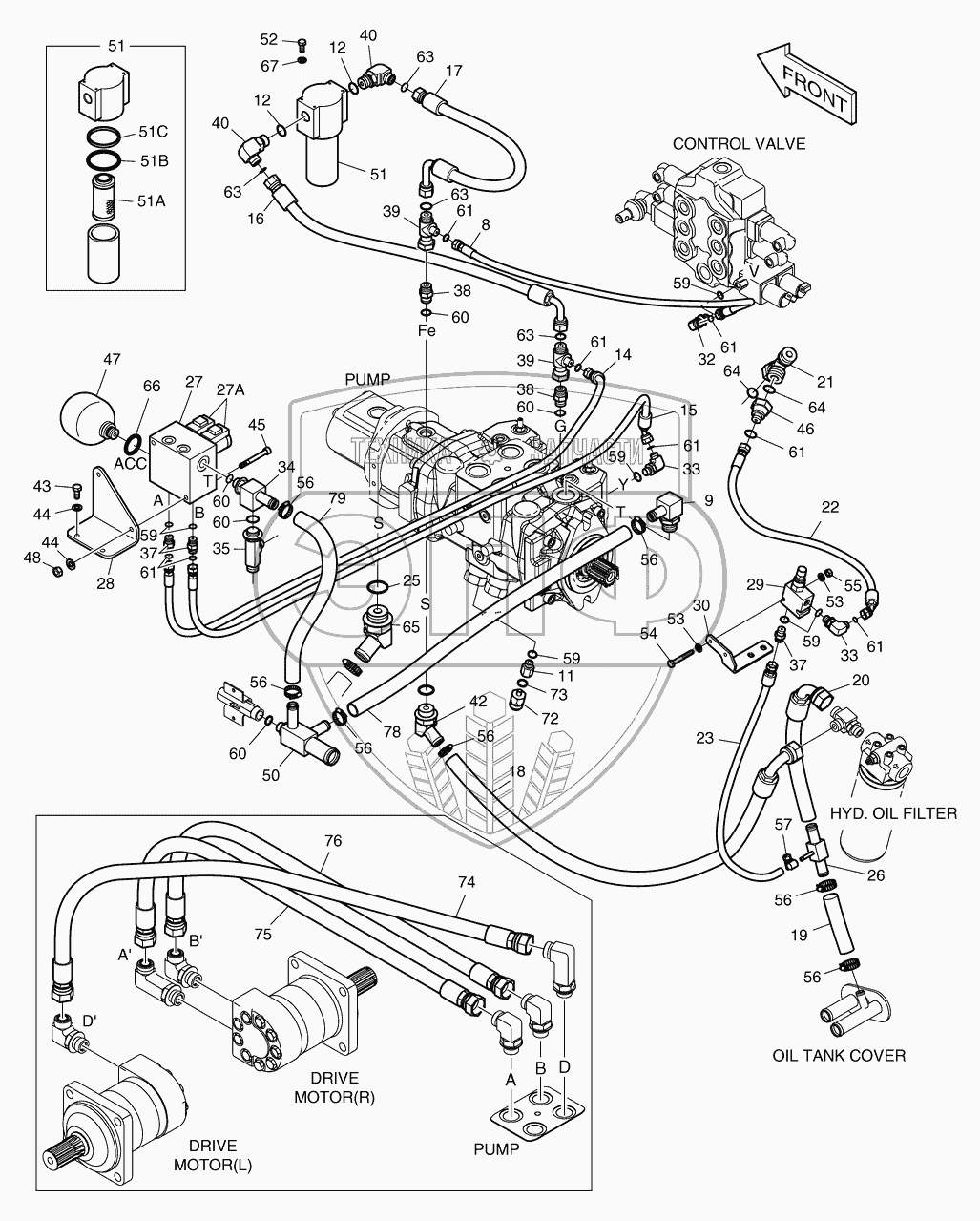 Каталог запасных частей к технике: Doosan Мини-погрузчик 450 Plus (Tier3). 6530 Трубопроводы управления