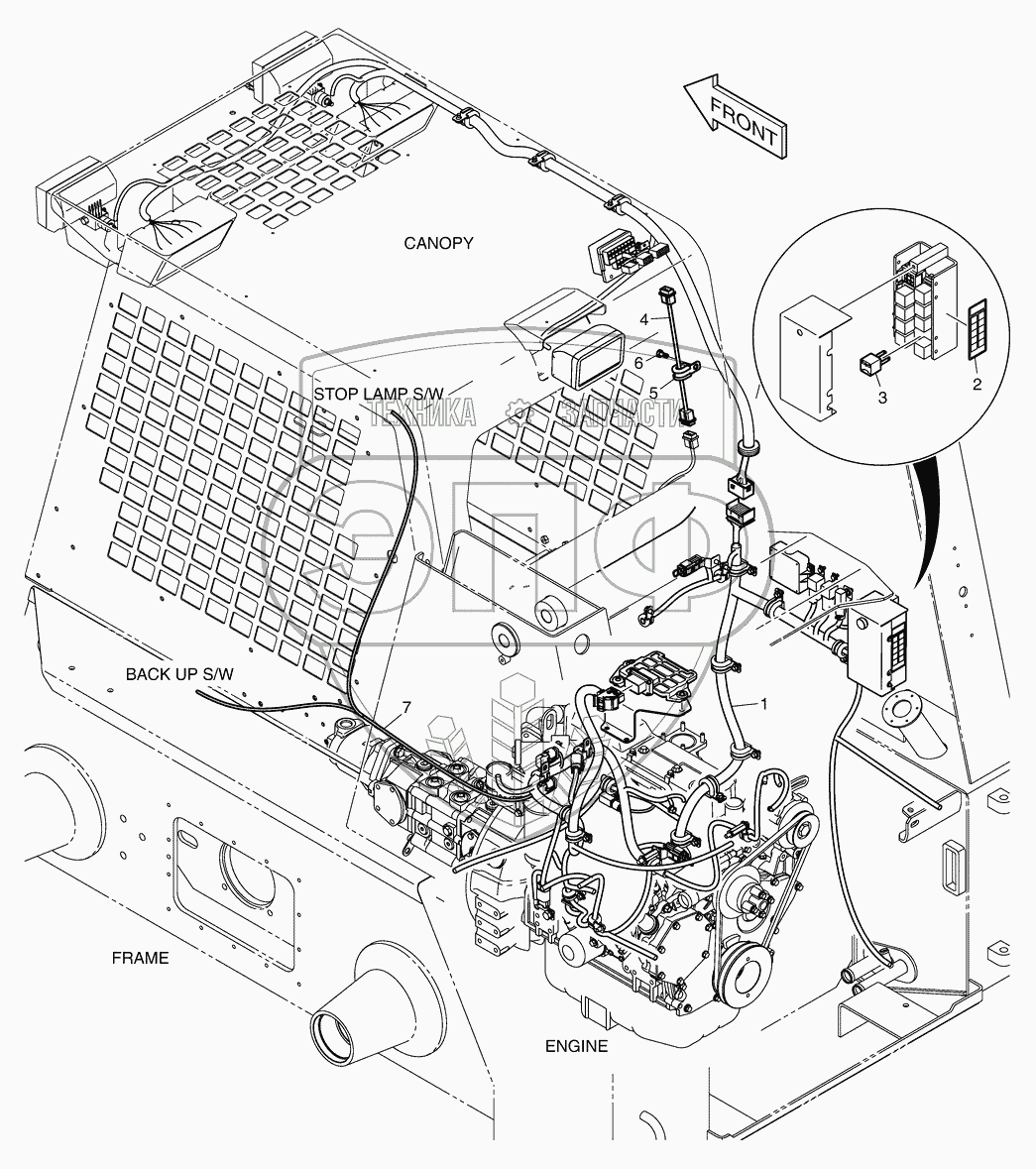 Каталог запасных частей к технике: Doosan Мини-погрузчик 450 Plus (Tier3). 6750 Электрооборудование