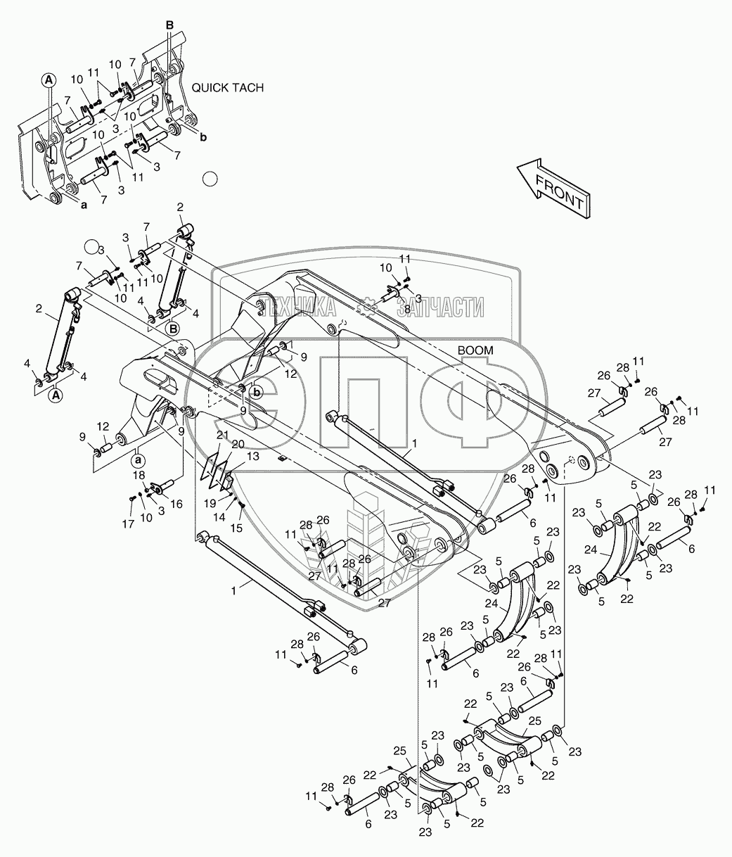 Каталог запасных частей к технике: Doosan Мини-погрузчик 460 Plus. 1210 Установка стрелы