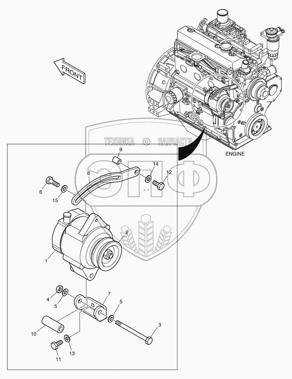 Каталог запасных частей к технике: Doosan Мини-погрузчик 460 Plus. 2120 Крепление генератора