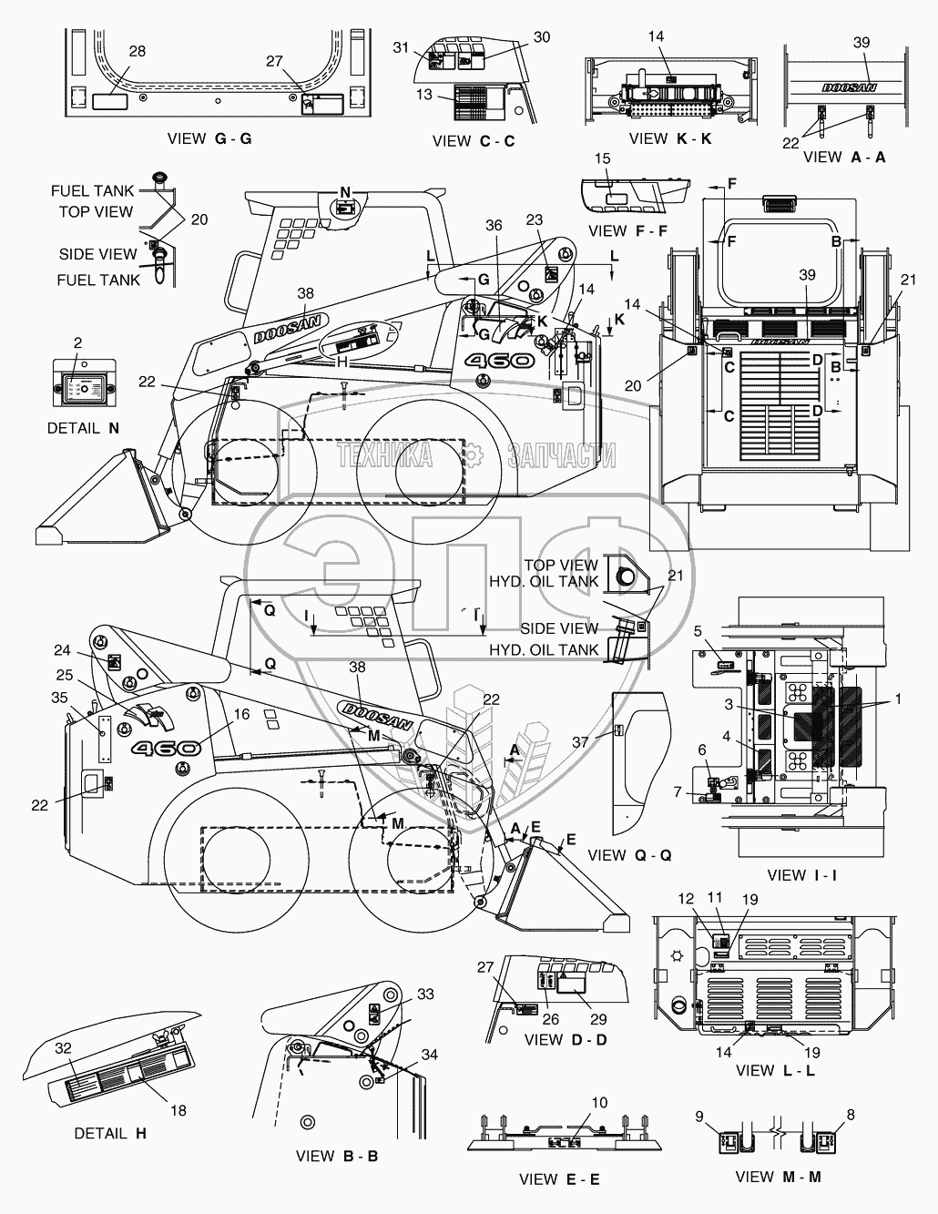 Каталог запасных частей к технике: Doosan Мини-погрузчик 460 Plus. 5100 Таблички