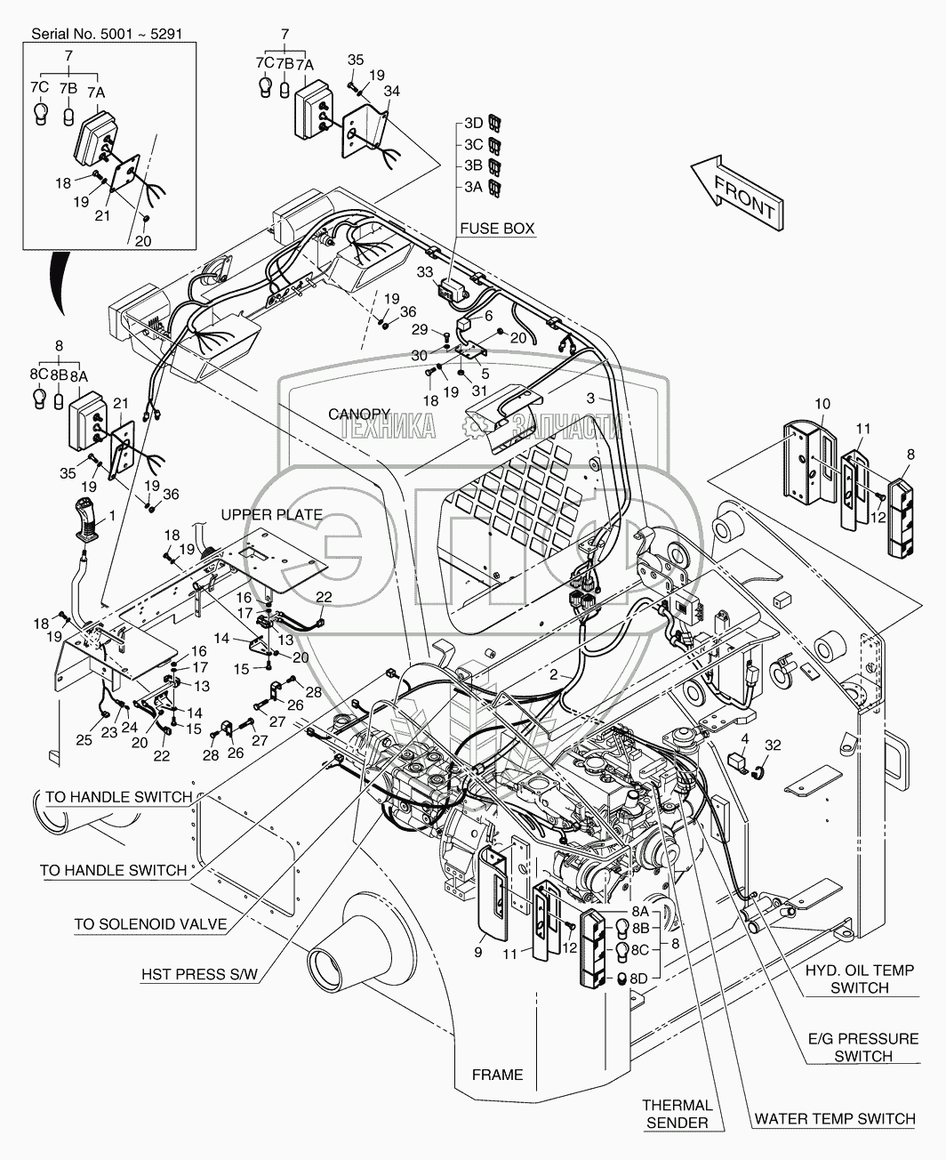 Каталог запасных частей к технике: Doosan Мини-погрузчик 460 Plus. 6210 Дополнительное освещение