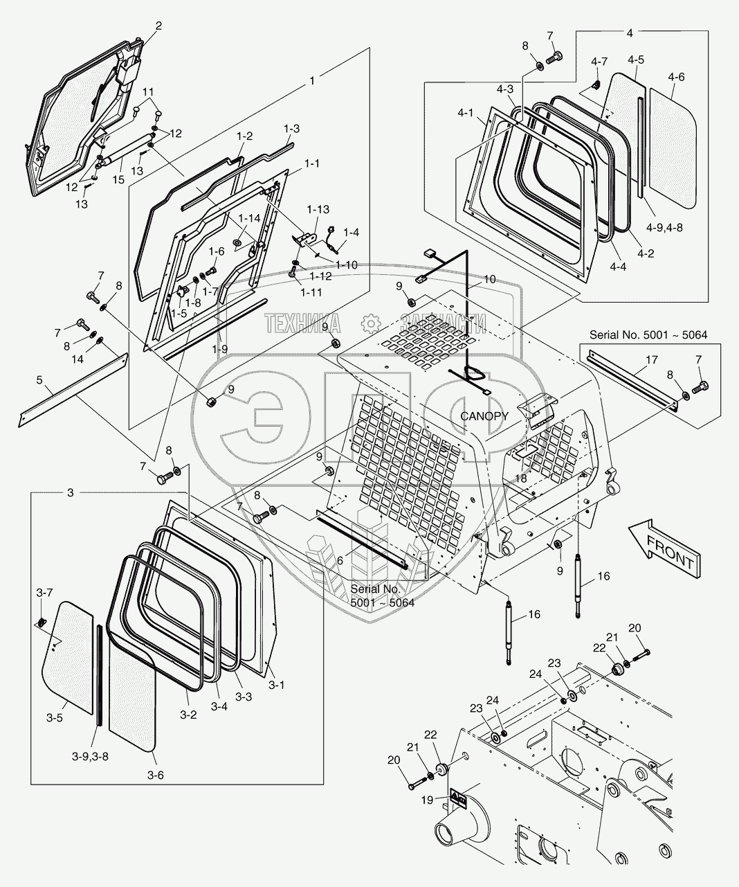 Каталог запасных частей к технике: Doosan Мини-погрузчик 460 Plus. 6260 Установка двери