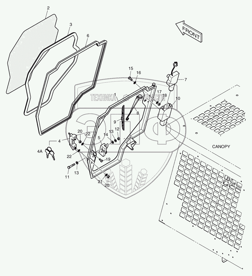 Каталог запасных частей к технике: Doosan Мини-погрузчик 460 Plus. 6270 Передняя дверь