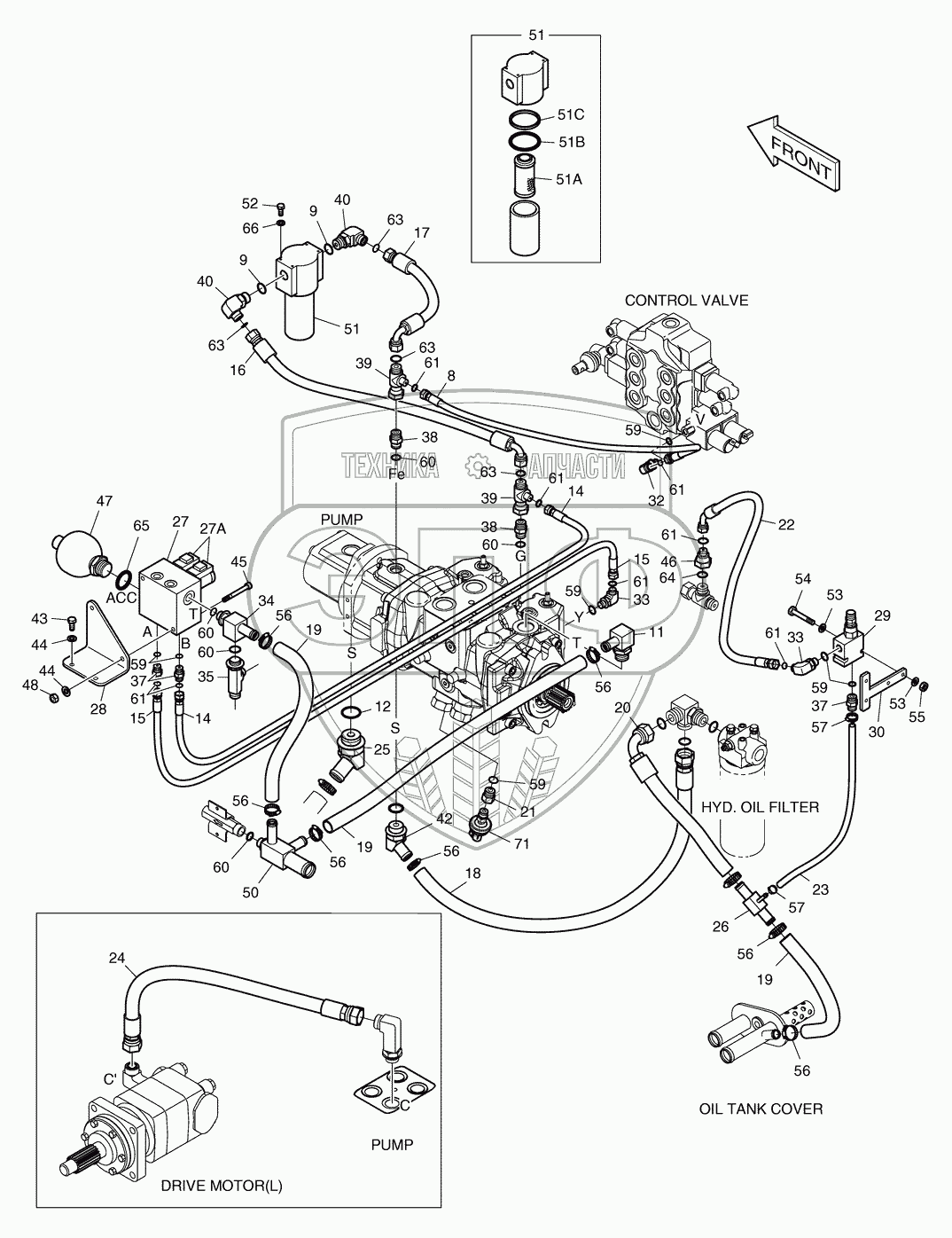 Каталог запасных частей к технике: Doosan Мини-погрузчик 460 Plus. 6550 Трубопроводы управления