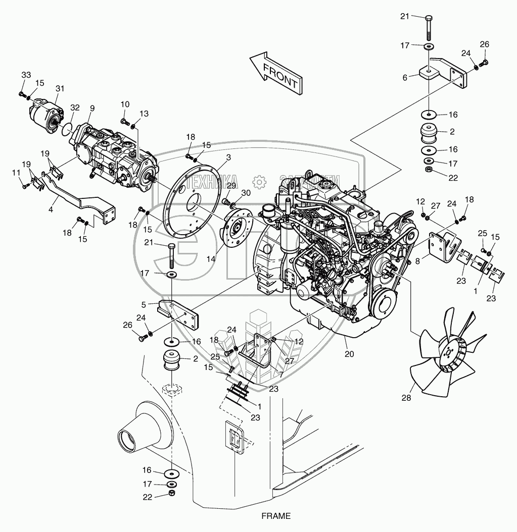 Каталог запасных частей к технике: Doosan Мини-погрузчик 460 Plus (Tier3). 2100 Установка двигателя