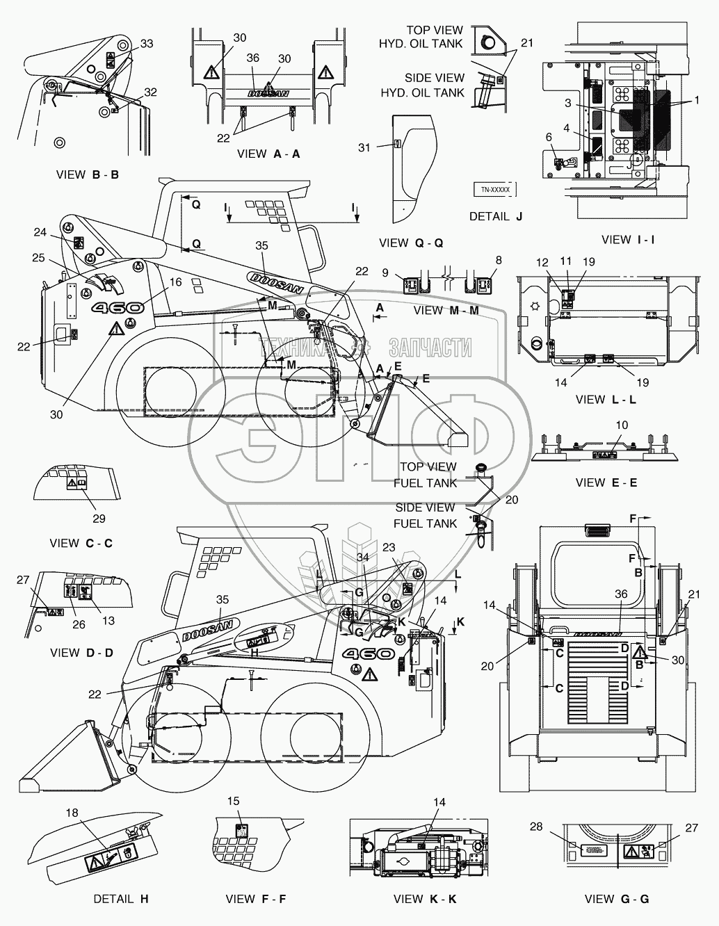 Каталог запасных частей к технике: Doosan Мини-погрузчик 460 Plus (Tier3). 5110 Таблички
