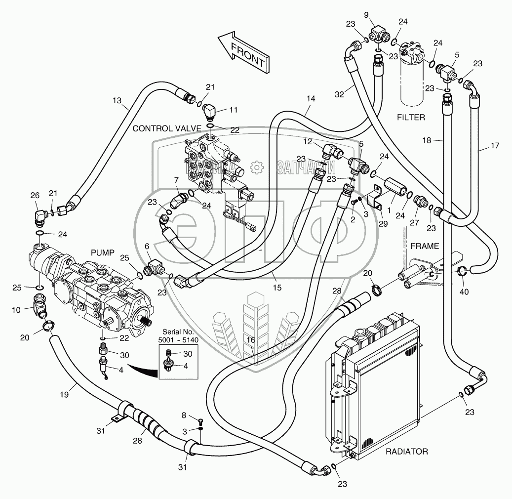 Каталог запасных частей к технике: Doosan Мини-погрузчик 470 Plus. 3130 Трубопроводы маслоохладителя